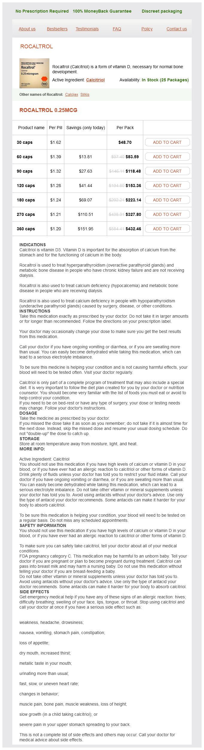 Calcitriol packs: 30 caps, 60 caps, 90 caps, 120 caps, 180 caps, 270 caps, 360 caps