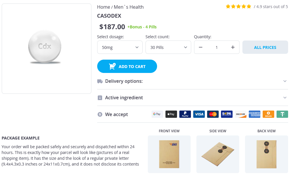 Casodex packs: 30 pills