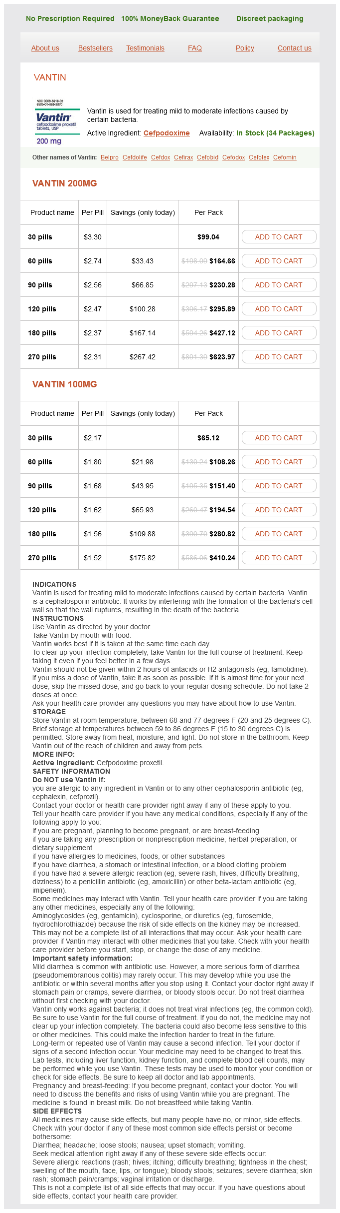 Cefpodoxime packs: 30 pills, 60 pills, 90 pills, 120 pills, 180 pills, 270 pills