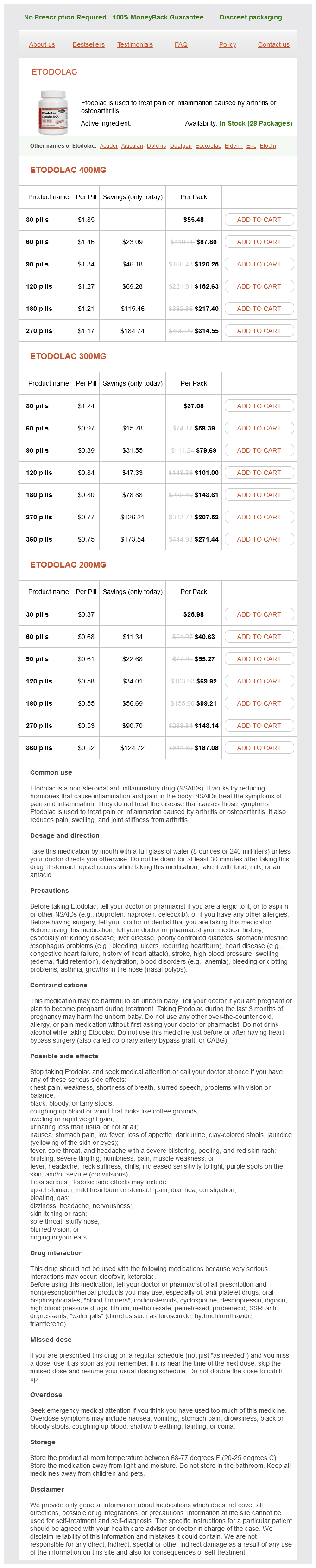 Etodolac packs: 30 pills, 60 pills, 90 pills, 120 pills, 180 pills, 270 pills, 360 pills