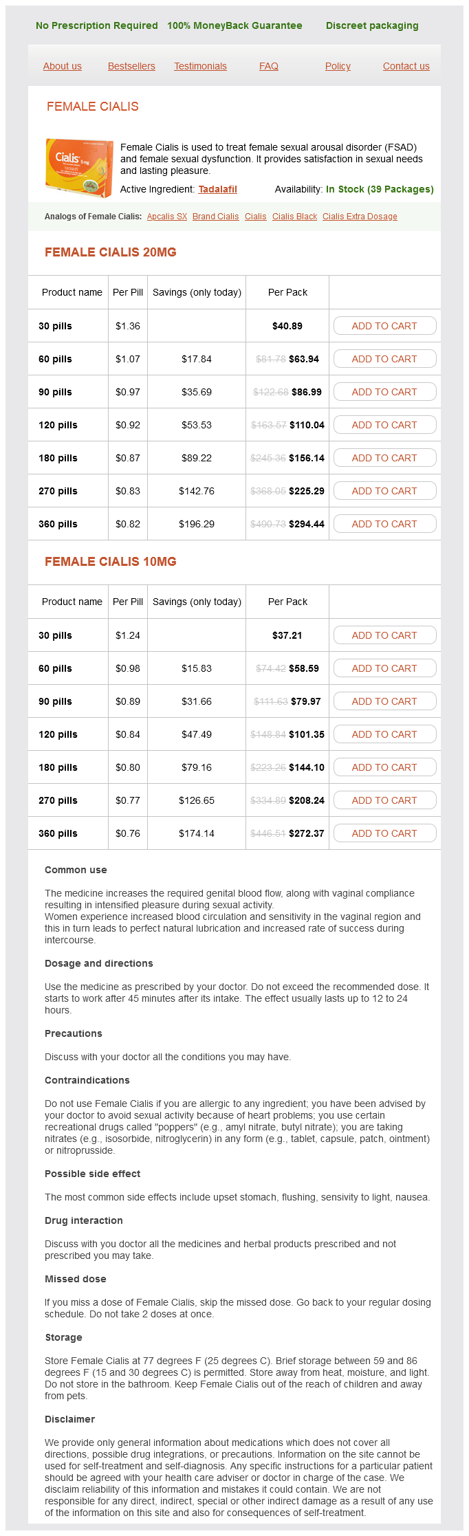 Tags: generic female cialis 10 mg otc, buy discount female cialis 10 mg line, cheap female cialis 20 mg buy online, female cialis 20 mg free shipping