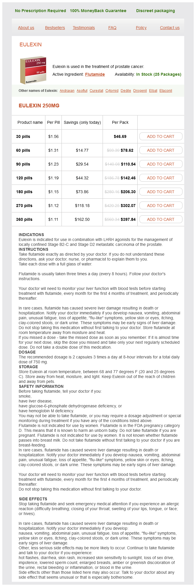 Flutamide packs: 30 pills, 60 pills, 90 pills, 120 pills, 180 pills, 270 pills, 360 pills