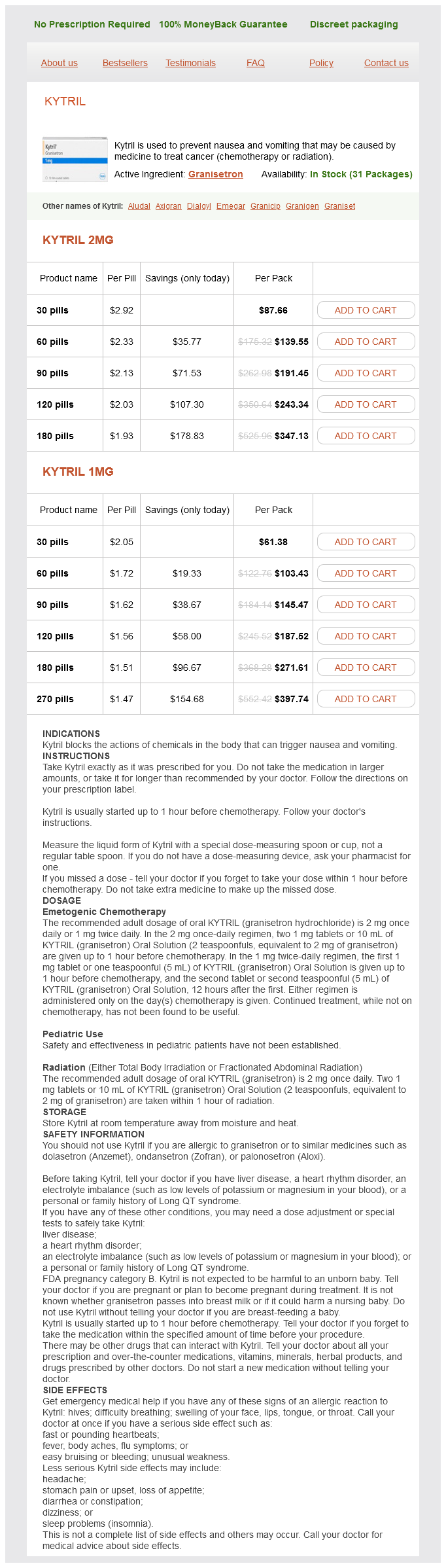 Kytril packs: 30 pills, 60 pills, 90 pills, 120 pills, 180 pills, 270 pills