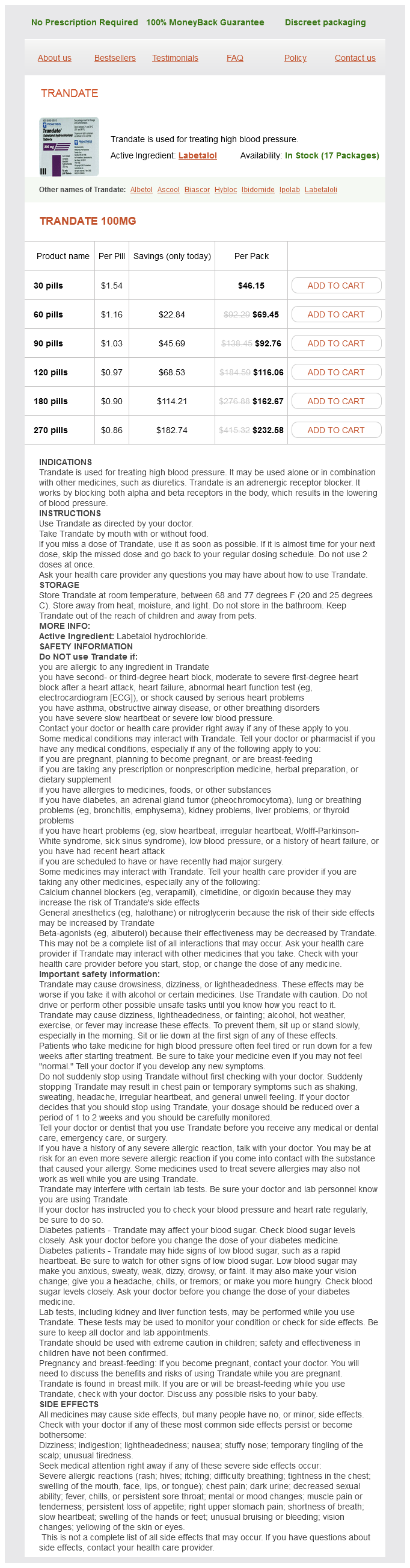 Labetalol packs: 30 pills, 60 pills, 90 pills, 120 pills, 180 pills, 270 pills