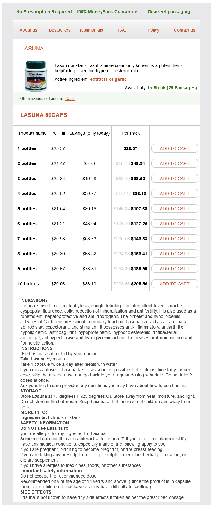 Lasuna packs: 1 bottles, 2 bottles, 3 bottles, 4 bottles, 5 bottles, 6 bottles, 7 bottles, 8 bottles, 9 bottles, 10 bottles