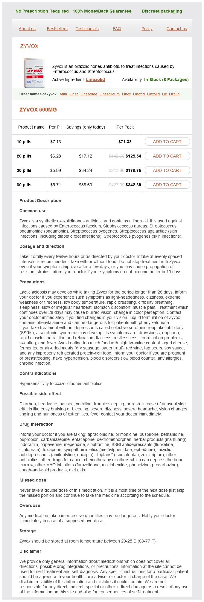 Linezolid packs: 10 pills, 20 pills, 30 pills, 60 pills