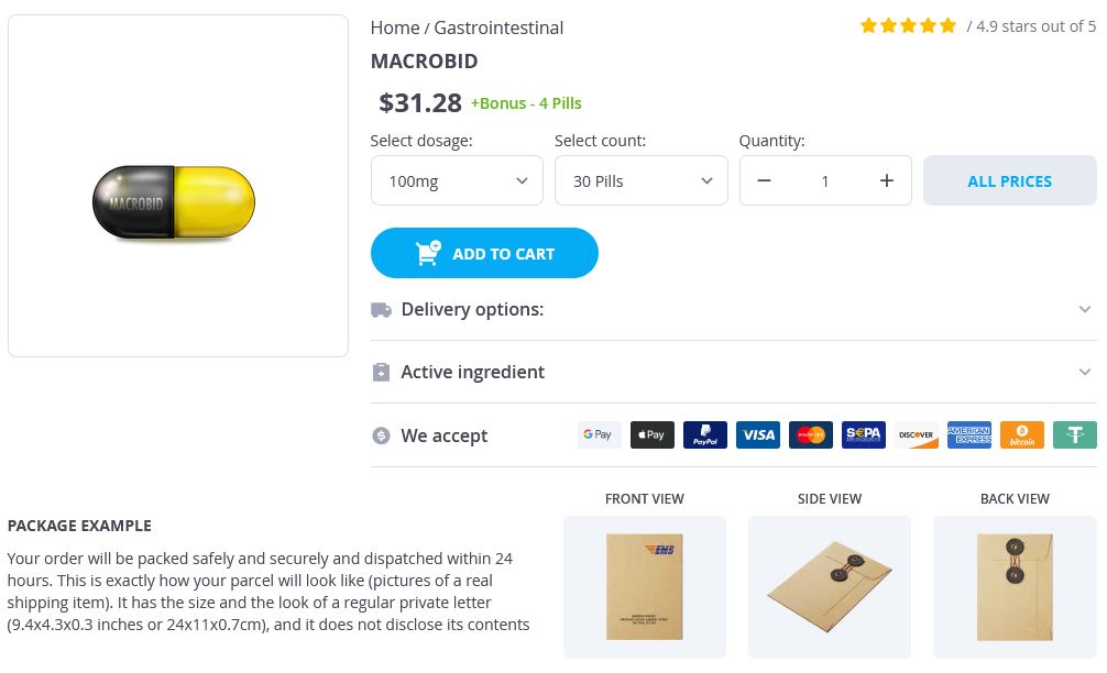 Macrobid packs: 30 pills, 60 pills, 90 pills, 120 pills, 180 pills, 360 pills
