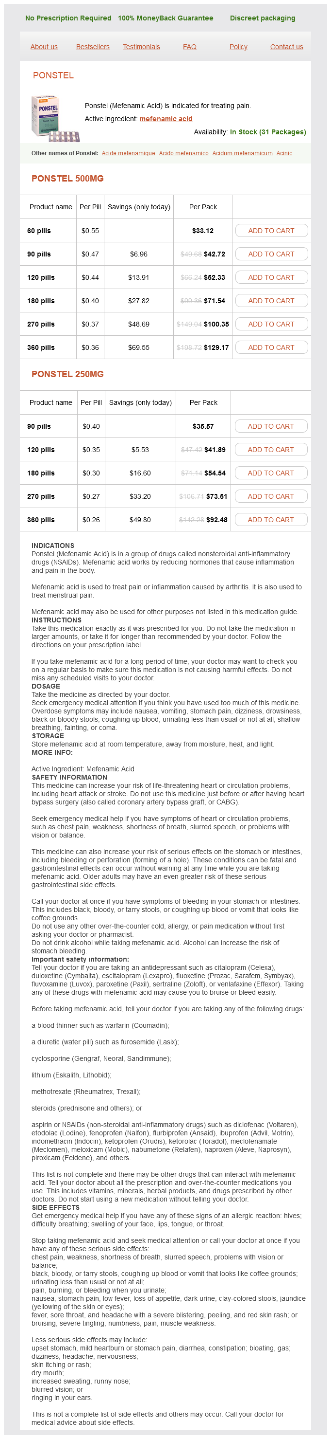 Mefenamic packs: 60 pills, 90 pills, 120 pills, 180 pills, 270 pills, 360 pills