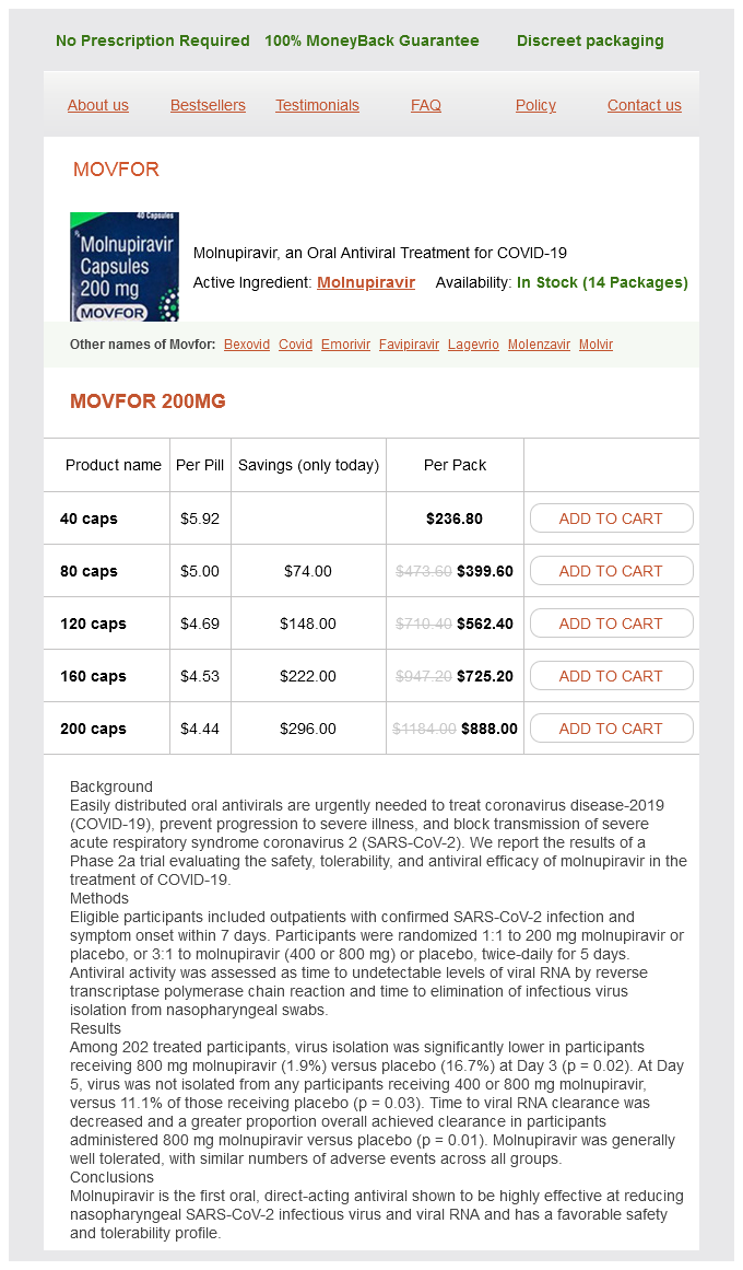 Molvir packs: 40 caps, 80 caps, 120 caps, 160 caps, 200 caps