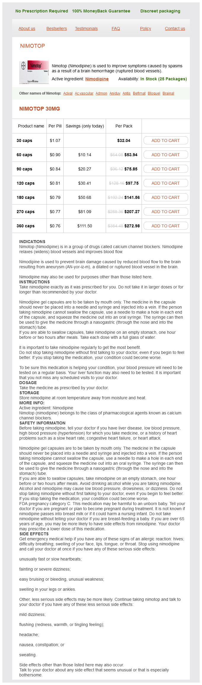 Nimodipine packs: 30 caps, 60 caps, 90 caps, 120 caps, 180 caps, 270 caps, 360 caps