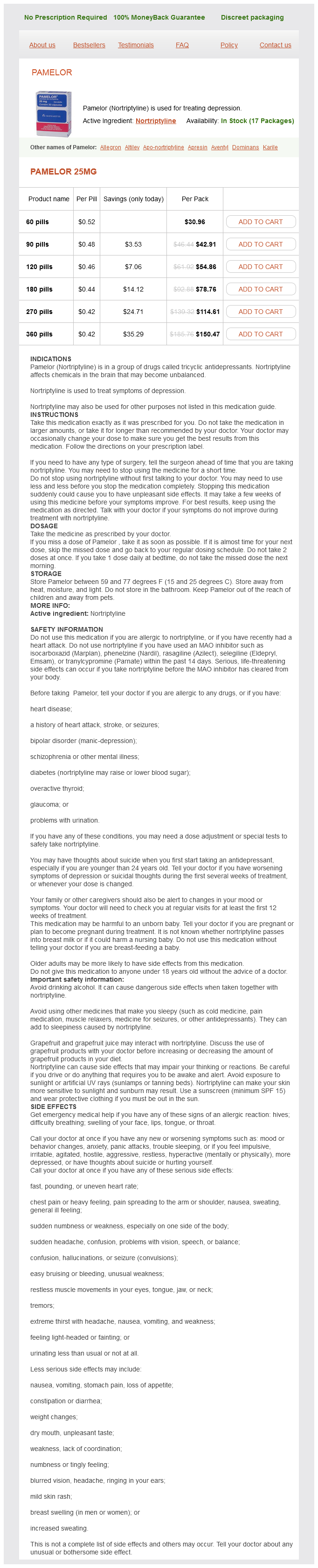 Nortriptyline packs: 60 pills, 90 pills, 120 pills, 180 pills, 270 pills, 360 pills