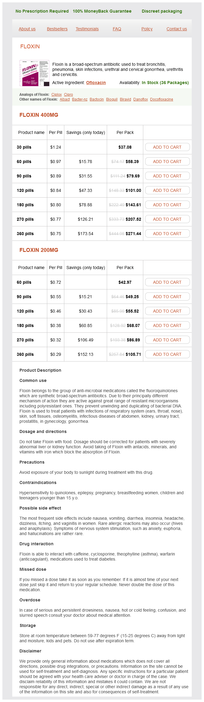 Ofloxacin packs: 30 pills, 60 pills, 90 pills, 120 pills, 180 pills, 270 pills, 360 pills