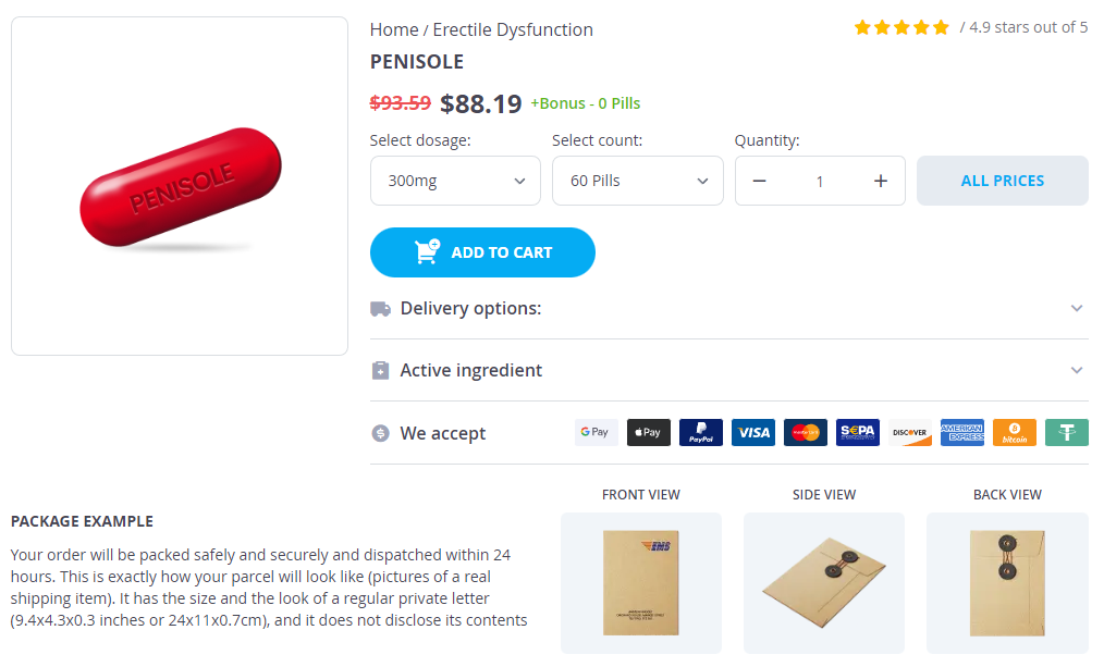 Penisole packs: 30 pills, 60 pills, 90 pills