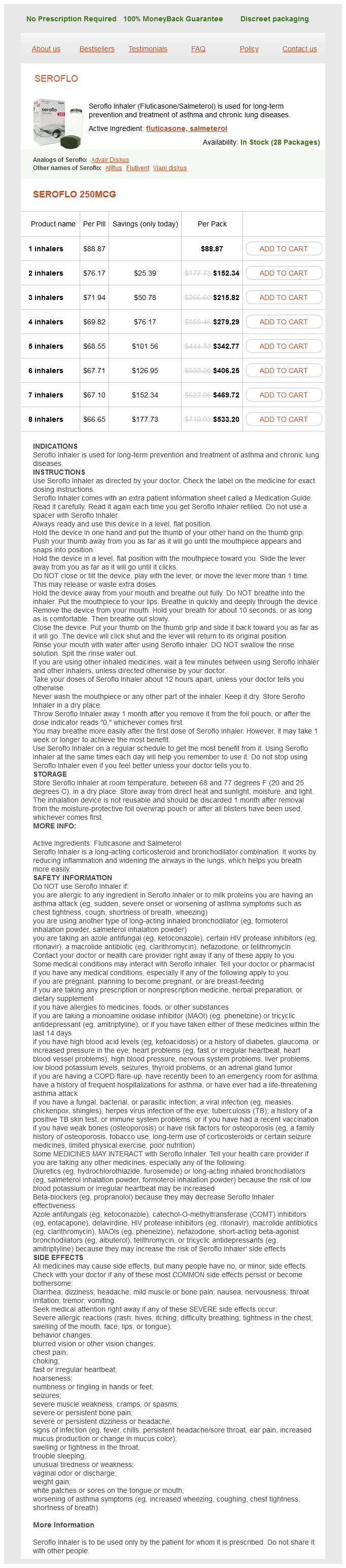Seroflo packs: 1 inhalers, 2 inhalers, 3 inhalers, 4 inhalers, 5 inhalers, 6 inhalers, 7 inhalers, 8 inhalers