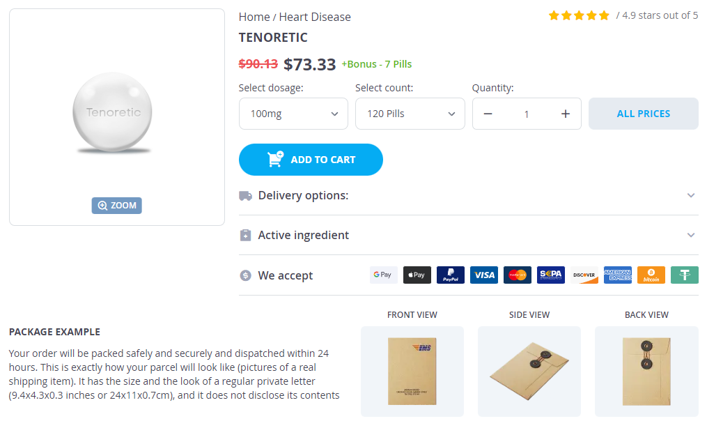 Tenoretic packs: 60 pills, 90 pills, 120 pills, 180 pills, 270 pills, 360 pills