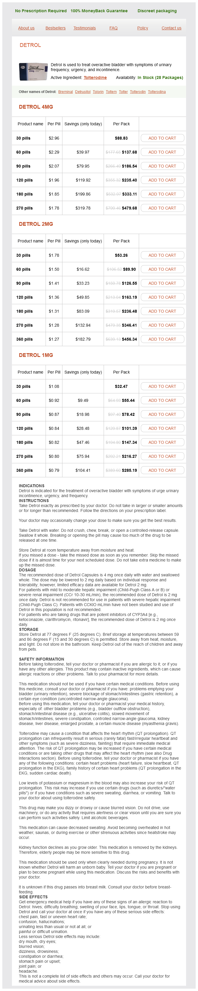Tolterodine packs: 30 pills, 60 pills, 90 pills, 120 pills, 180 pills, 270 pills, 360 pills