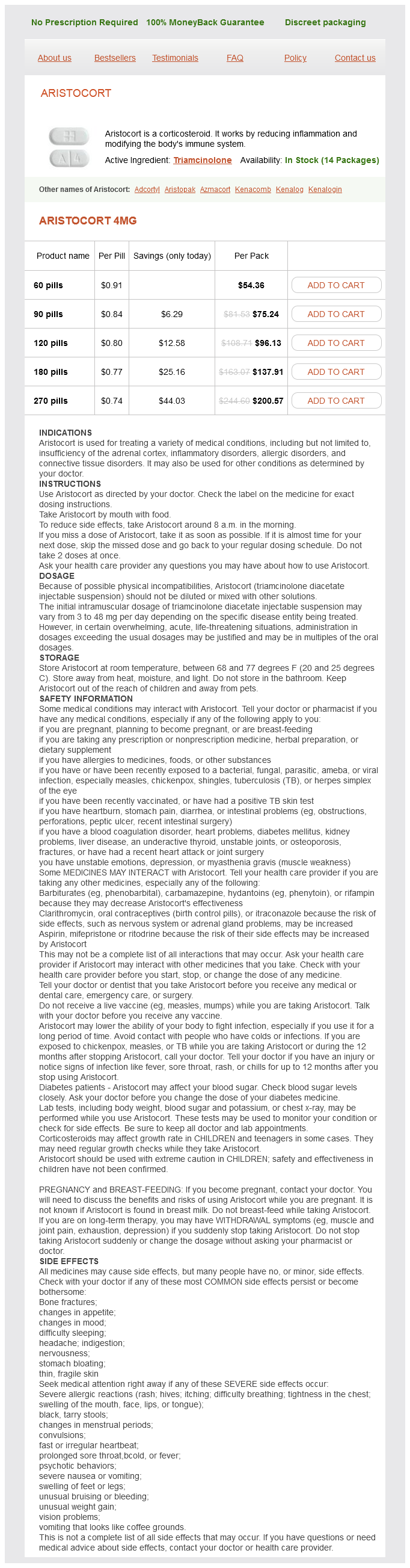 Triamcinolone packs: 60 pills, 90 pills, 120 pills, 180 pills, 270 pills